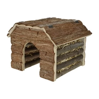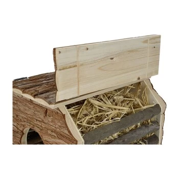 Der AniOne Heuschober ist aus naturbelassenem Holz und in seiner Anwendung sehr praktisch. Die zwei integrierten Heuraufen lassen sich durch aufklappbare Dächer leicht befüllen und das Heu ist gleichzeitig geschützt. Das Haus ist nicht nur als Heuraufe einsetzbar, sondern bietet Ihrem Nager gleichzeitig einen Rückzugsort und Kletterplatz. Das Naturholz aus nachhaltig bewirtschafteten Wäldern und die Beschaffenheit der Baumrinde unterstützen das natürliche Nageverhalten und die notwendige Abnutzung der Zähne.