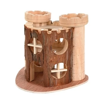 Der Spielturm gestaltet in Form einer kleinen Burg besitzt mehrere Eingänge und damit Fluchtmöglichkeiten für Ihren kleinen Nager. Bitte untersuchen Sie den Artikel regelmäßig auf Verbissspuren und tauschen Sie ihn bei Bedarf aus.
