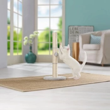 Die Kratzsäule ist mit Sisaseil uwickelt und sorgt so für einen unbegrenzten Kratzspaß. Der mit flauschigem Plüsch überzogene Sockel in Trendfarbe bietet genügend Platz zum Kuscheln und Schmusen. Zusätzlichen Spielspaß bringt der Sisalball, dessen Seil am oberen Ende der Kratzsäule befestigt ist.