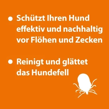 Benetzen Sie auf sanfte Weise das Fell Ihres Hundes mit lauwarmem Wasser. Verwenden Sie die nachstehend vorgeschlagene Menge Shampoo und massieren Sie es in das Fell ein. Achten Sie darauf, empfindliche Bereiche wie Augen, Mund und Ohren zu meiden. Lassen Sie das Shampoo vor allem im Bereich des Halses und des Rutenansatzes, wo Zecken sich gerne ansammeln, gut aufschäumen. Sorgfältig mit lauwarmem Wasser ausspülen und dann den Hund trocknen. Lassen Sie ihn nicht außer Haus, bevor er vollkommen trocken ist.