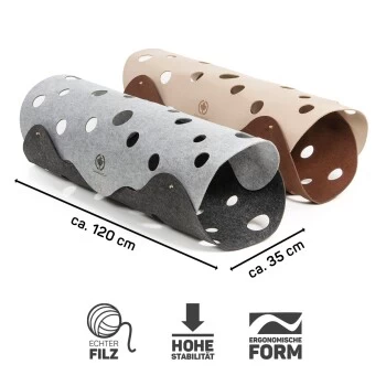 - Moderner 2-teiliger Katzentunnel aus anschmiegsamen Filzmaterial