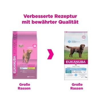 - Schlank: Enthält 30 % weniger Fett als Eukanuba für ausgewachsene Hunde großer Rassen