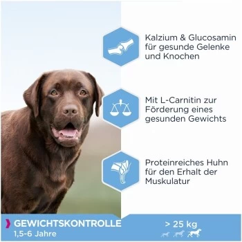 Durch seinen 30 % niedrigeren Fettanteil (im Vergleich zu Eukanuba Trockenfutter für große Hunderassen) ist Eukanuba Trockenfutter zur Gewichtskontrolle für ausgewachsene Hunde großer Rassen ideal für den Erhalt eines gesunden Körpergewichts Ihres ausgewachsenen großwüchsigen Hundes.