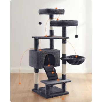 Für eine energiegeladene Katze? Kein Problem! Dieser Kratzbaum verfügt über ein verstärktes Fundament sowie einen Kippschutz, damit Ihr süßes Energiebündel darauf wild herumspringen kann