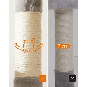 HURRA! Dank dieses Kratzbaums wird sich Ihr Fellknäuel nicht mehr einsam fühlen, wenn Sie nicht daheim sind. Stellen Sie Ihrem Kätzchen diesen stabilen Kletterbaum zur Seite und bringen Sie es zum Schnurren!