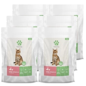 Verloren im Futterdschungel? Welches Futter ist wirklich mit hauseigenem Sachverstand und Expertise entwickelt? Bei Fellicita können Sie sicher sein, dass die Rezepturen für Katzen und Hunde aus tierärztlicher Feder nicht nur einmalig nach FEDIAF-Standards konzipiert wurden, sondern auch laufend gemäß aktuellen wissenschaftlichen Erkenntnissen überprüft werden. Das Sortiment umfasst Mono- und Multiprotein-Nassfutter mit kurzer Zutatenliste und transparenten Rezepturkonzepten; hergestellt in Deutschland. Die besonders leckere, weiche und feine Pastete überzeugt auch Gourmet-Katzen. Tierfreunde vertrauen Fellicita, denn: gesundes Futter – glückliches Leben!