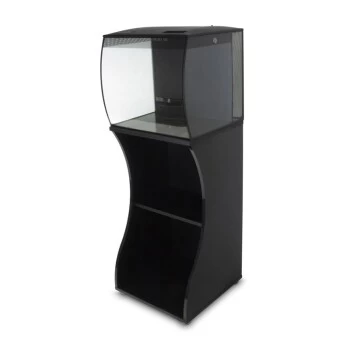 Die Unterschränke in schwarz und weiß für die Flex 57 Liter Aquarien führen mit ihrer geschwungenen Form die Linie des Aquariums fort und bilden ein Schmuckstück in Ihrem Wohnraum.