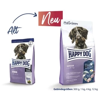 Happy Dog fit & vital Senior ist perfekt abgestimmt auf die Bedürfnisse älterer Hunde, da sich mit zunehmendem Alter der Organstoffwechsel verändert.
