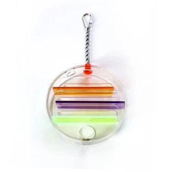 Das Treat Maze Wheel fördert nicht nur die Kreativität, sondern auch die Koordination des Vogels. Durch ein kleines Loch werden Leckereien ins Innere des Rades gesteckt.