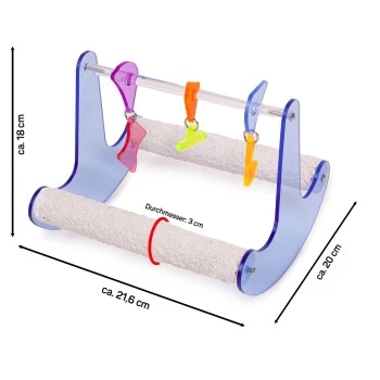 Eine Papageien-Wippe aus Acryl ist ein lustiges und unterhaltsames Spielzeug für Papageien. Die Wippe besteht aus einem Acryl-Rahmen mit zwei Sitzstangen, die sich bewegen und schaukeln lassen, wenn der Papagei darauf sitzt oder spielt. Die Wippe ist stabil und sicher und eignet sich für Papageien jeglicher Größe. Sie ist auch leicht zu reinigen und pflegeleicht. Mit der Papageien-Wippe aus Acryl können sich Ihre Vögel auf spielerische Weise beschäftigen und ihren natürlichen Bewegungsdrang ausleben. Ausserdem werden die Krallen durch die Betonstangen gepflegt.