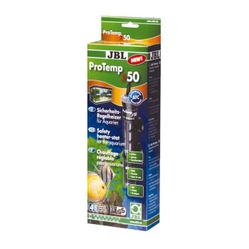Je nach Herkunft der Fische variiert die Temperatur, bei der sie sich wohl fühlen. Einfache InstallationDen Heizer in den mitgelieferten Schutzkorb stecken. Gewünschte Temperatur am Einstellrad wählen und die Heizung mindestens bis zur Linie „min. water level“ ins Aquarium tauchen. Mit den Saughaltern befestigen. Sobald der Heizer mit dem Stromnetz verbunden ist, leuchtet die Kontrollleuchte auf. Der Heizer kann auch waagerecht, z.B. in Schildkrötenbecken, montiert werden. Optimale Temperaturübertragung Der Sicherheits-Regelheizer von JBL bietet eine optimale Temperaturübertragung in dem Bereich von 20-34°C. Mit Hilfe des Einstellrades ist eine Regelgenauigkeit von +/- 0,5 °C gewährleistet. Größe 25 = Heizung zur optimalen Temperierung von Aquarien mit 10 – 50 l Inhalt (30 – 60 cm Länge).Größe 50 = Heizung zur optimalen Temperierung von Aquarien mit 30 – 80 l Inhalt (40 – 80 cm Länge).Größe 100 = Heizung zur optimalen Temperierung von Aquarien mit 50 – 160 l Inhalt (60 – 100 cm Länge)Größe 150 = Heizung zur optimalen Temperierung von Aquarien mit 90 – 200 l Inhalt (80 – 100 cm Länge)Größe 200 = Heizung zur optimalen Temperierung von Aquarien mit 100 – 300 l Inhalt (80 – 120 cm Länge)Größe 300 = Heizung zur optimalen Temperierung von Aquarien mit 160 – 400 l Inhalt (100 – 120 cm Länge) Abschaltautomatik bei sinkendem Wasserstand.4 Jahre Garantie.Für Kinder unzugänglich aufbewahren.