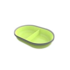 Die Schale hat zwei getrennte Näpfe für beispielweise Trocken- und Nassfutter.